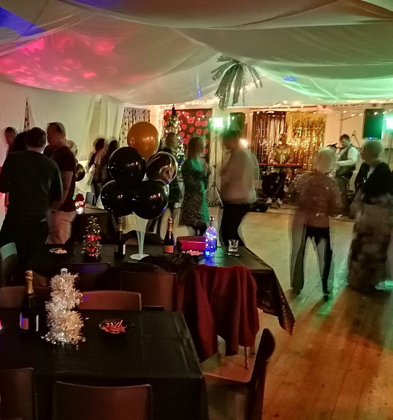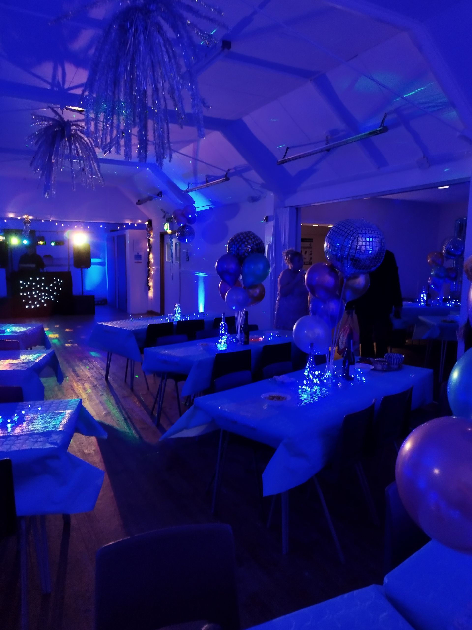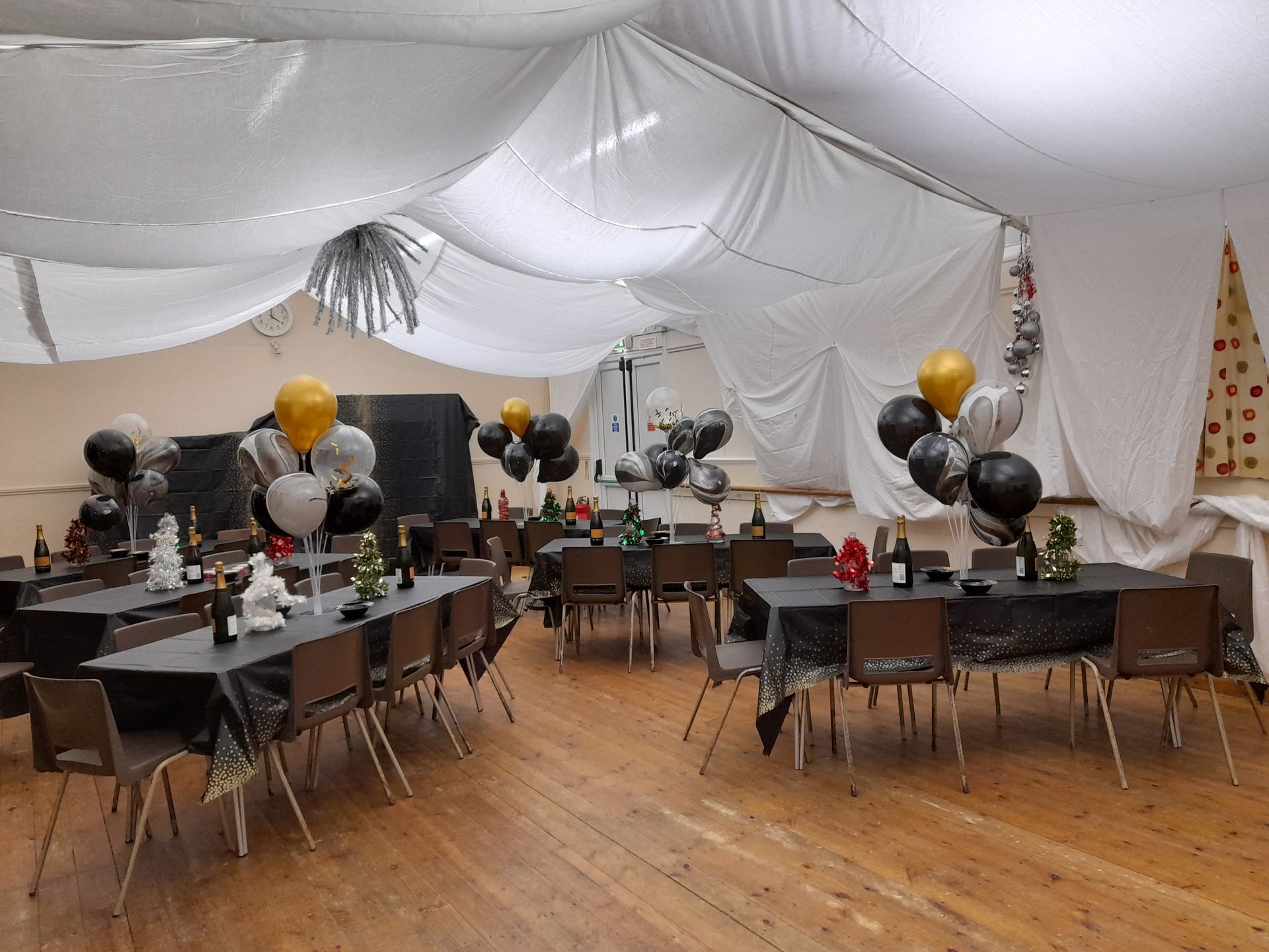 We managed to transform the village hall into a Christmas Wonderland, with decorations, balloons, lights, fizz, live music and as much glitter as party goers could muster. We were particularly impressed with the man in the white glitter tuxedo suit, although we didn’t see him on the dance floor!