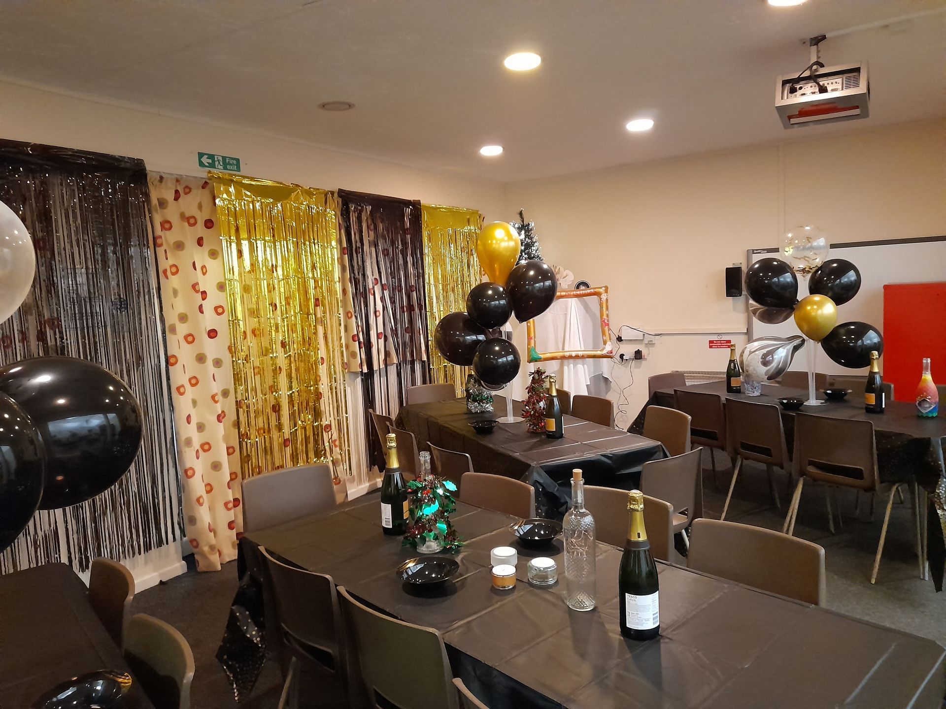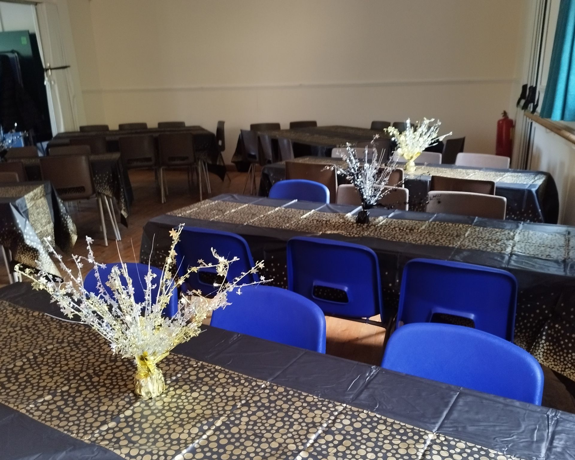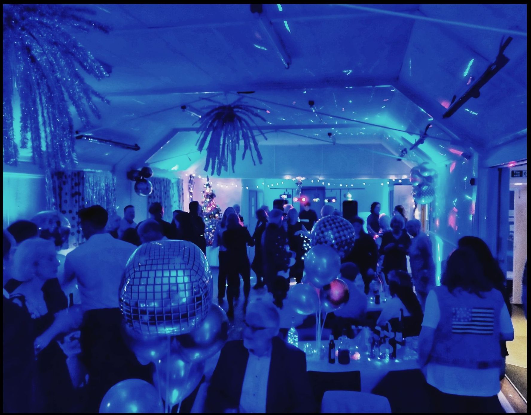 We managed to transform the village hall into a Christmas Wonderland, with decorations, balloons, lights, fizz, live music and as much glitter as party goers could muster. We were particularly impressed with the man in the white glitter tuxedo suit, although we didn’t see him on the dance floor!